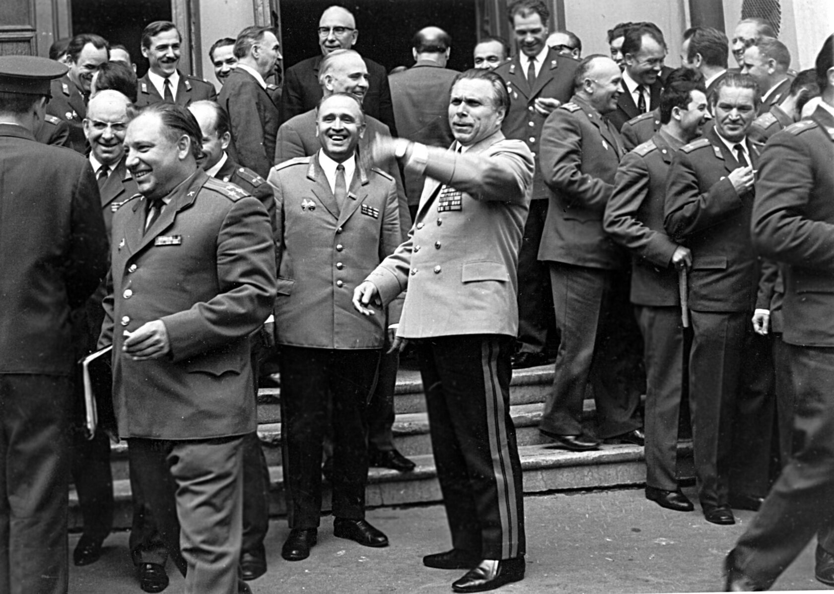 Однажды со мной произошел такой казус. На торжественное собрание приехал К. Т. Мазуров. Я впервые близко увидел этого человека, который был авторитетнейшим государственным деятелем. По установившейся традиции его лично встречал министр. По манере их общения и разговору я понял, что они хорошо знают и уважают друг друга. Я помог Мазурову освободиться от пальто и повесил его на отдельно стоящую вешалку. Поговорив немного, гость вместе с министром поднялись по лестнице наверх. К этому времени стали подтягиваться другие высокие гости, и мы занялись обычной работой. Дружной группой с шутками и смехом вошли космонавты из числа молодых. Вели они себя всегда раскованно, естественно и в обязательном порядке присутствовали в президиуме торжественного заседания. Я по традиции вручил им программы концерта и переключился на другие дела.